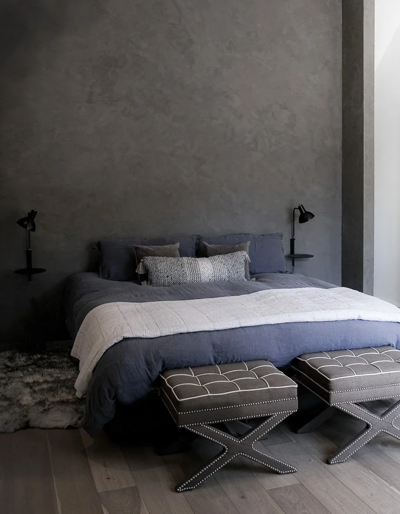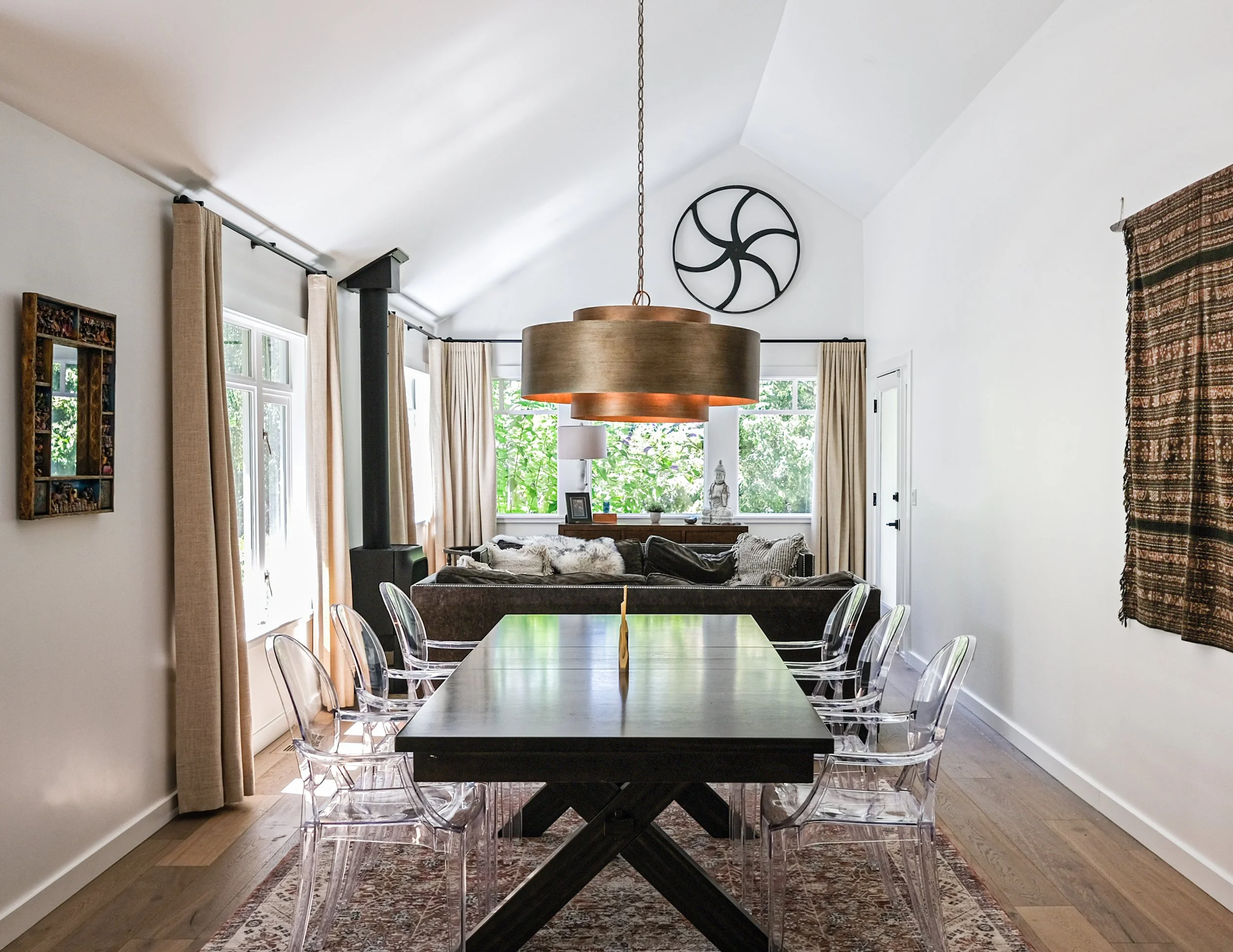 Once a travel agency, now a tranquil home. This full remodel transformed office space into a warm, modern residence with custom white oak cabinetry and floating shelves from our woodshop, Caesarstone countertops, and Roman Clay walls that bring softness and texture to every room.