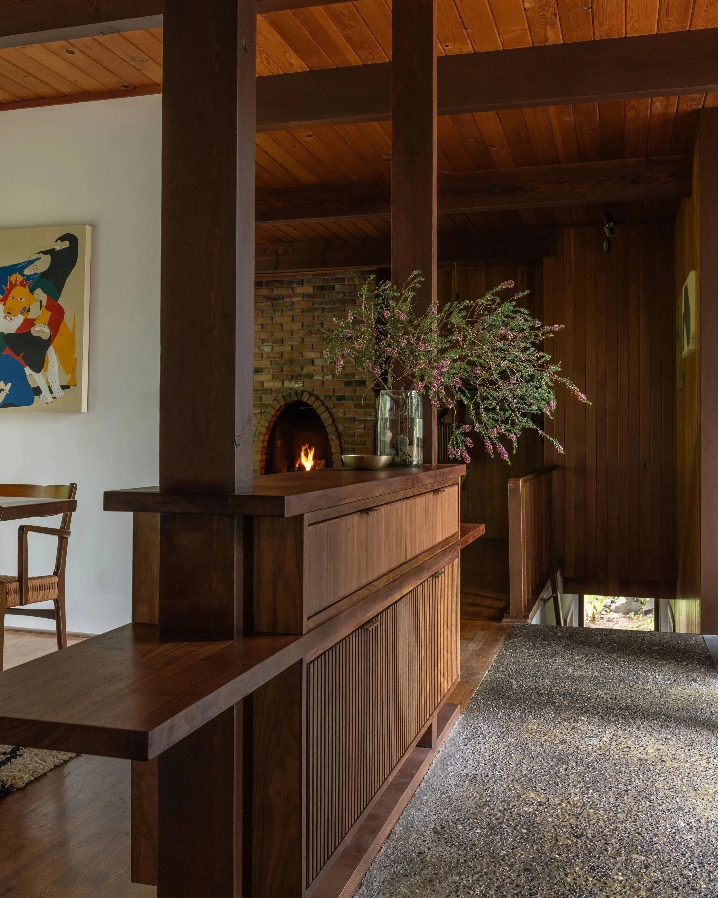 A historic mid-century modern home in Seattle, The Burrows underwent an extensive remodel. The lower level, once a home-psychiatry office, was renovated into a primary bedroom and wet-room suite, a laundry room, and a yoga retreat. Upstairs, a full kitchen renovation features custom cabinetry crafted in the Bucktide woodshop, paired with comprehensive electrical and mechanical upgrades. Originally designed by Anna Williams and built by John Burrows, the remodel preserves the home’s architecture while modernizing daily living.
